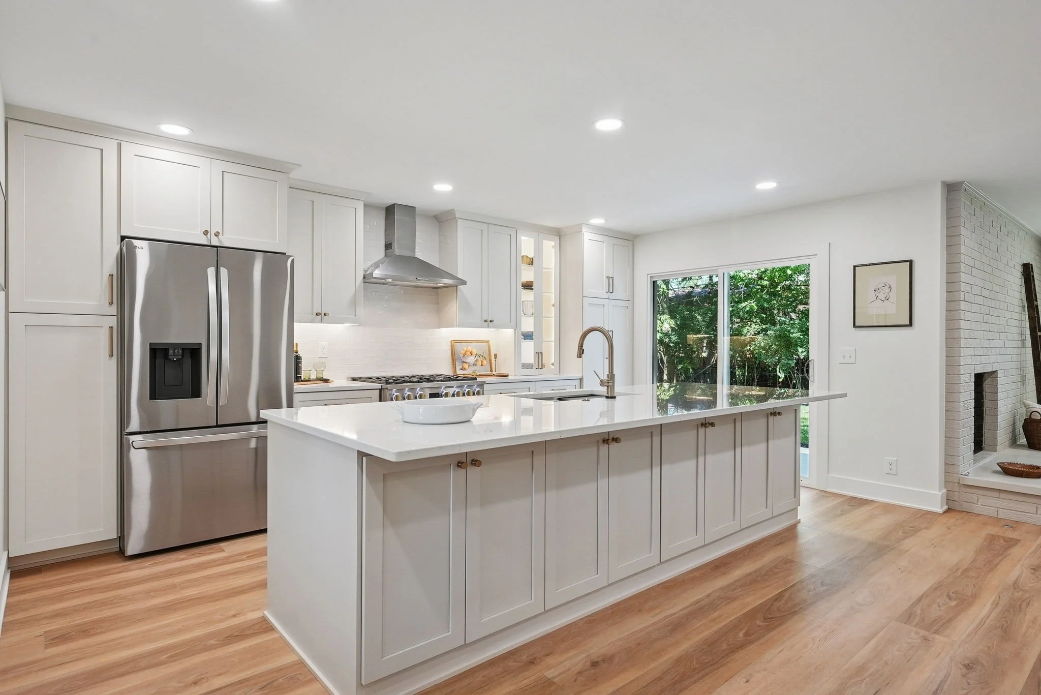 New cabinets, often new flooring and lighting, sometimes new windows or doors.